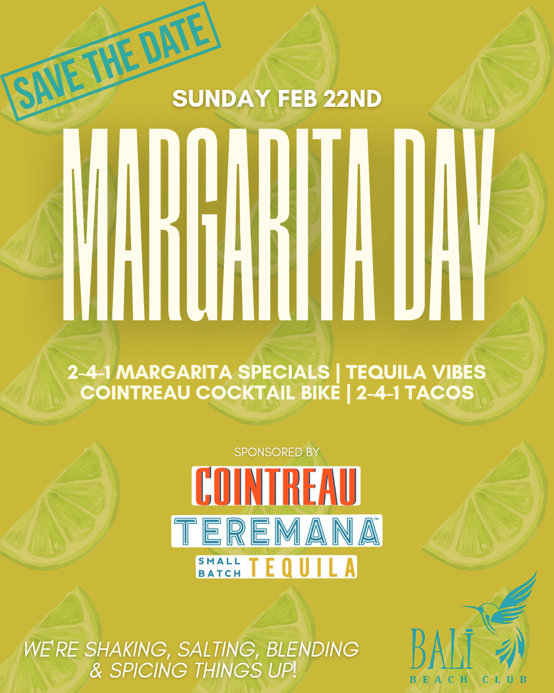 Calling Margarita lovers in Barbados - get ready for National Margarita Day Sunday 22nd Feb. This is not a happy hour. It's a Tequila Takeover. 241 Tacos & Margaritas, DJs, sunshine + even a pedal-powered blender bike to spin up your frozen cocktails - forget the reps we're all about reposado this Sunday.